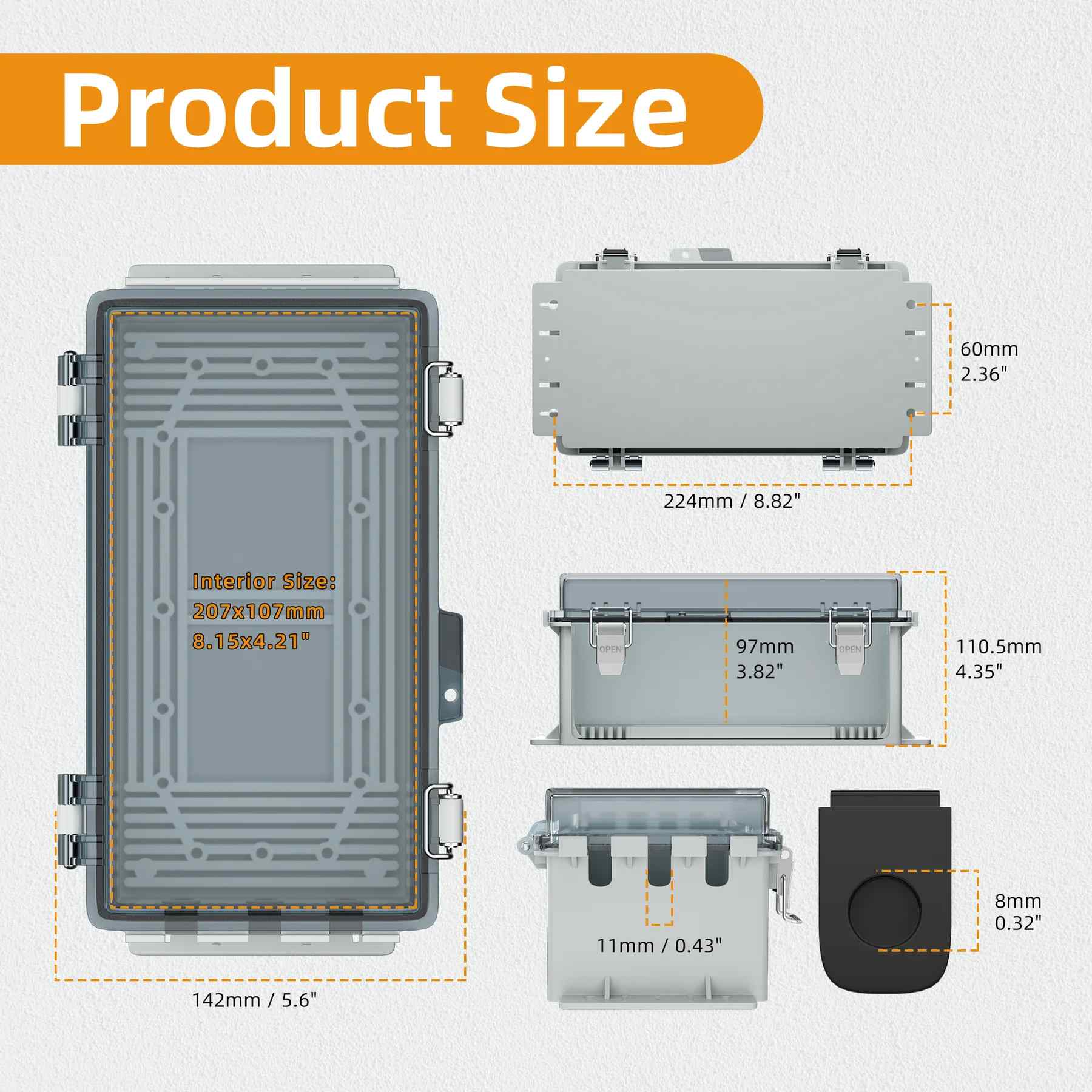 【Zawias przezroczystej osłony】- wytrzymałe plastikowe przedłużacz na zewnątrz maczkową na zawiasach przezroczystą pokrywę, która ułatwia monitorowanie statusu sprzętu elektronicznego w środku. Jego przestronne wewnętrzne wymiary 8,1 „x4,2„ x3,8 ”zapewniają dużą przestrzeń dla różnych urządzeń.