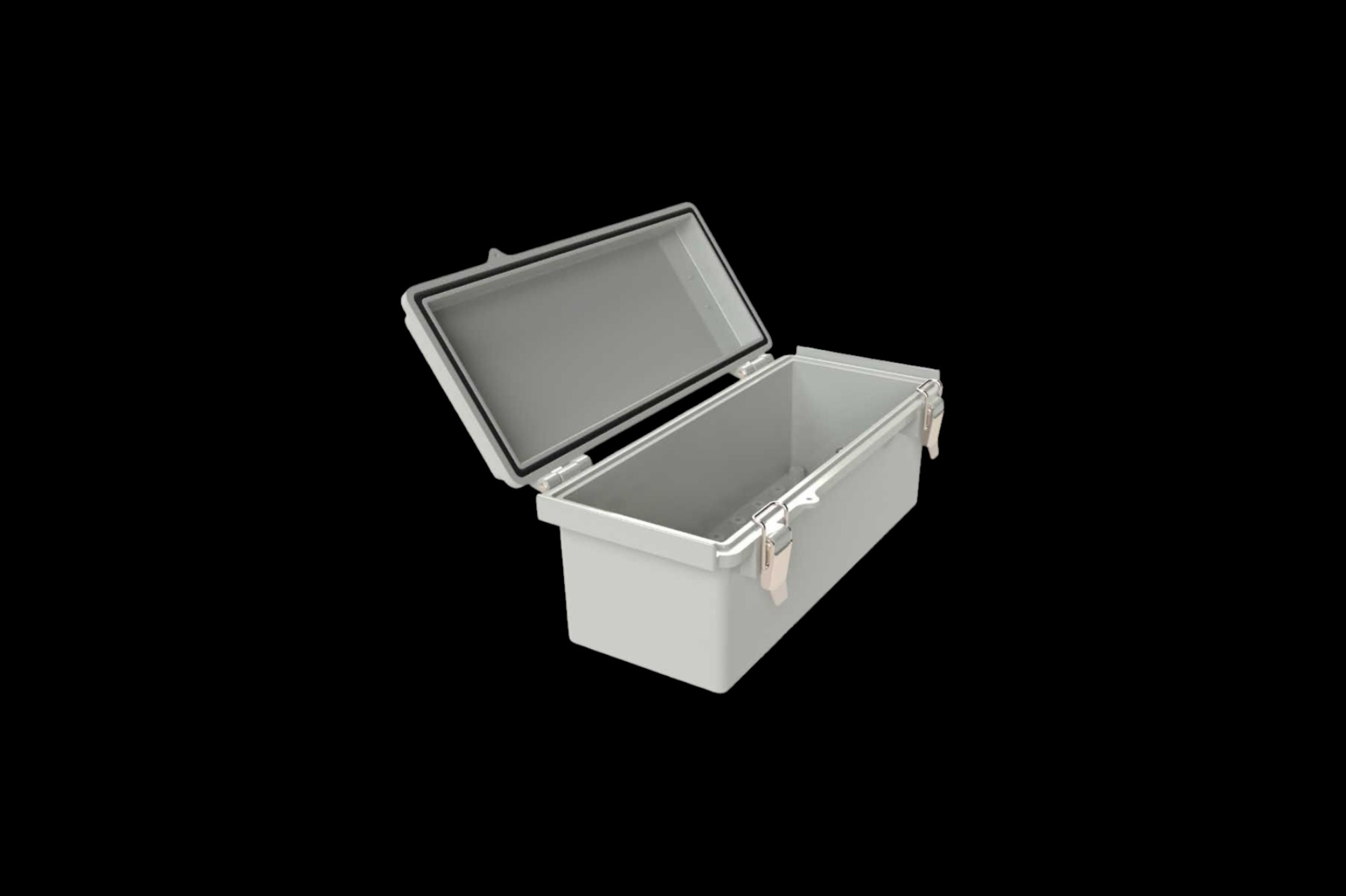 W celu zwiększenia bezpieczeństwa obudowa jest wyposażona w wysokiej jakości zatrzaski ze stali nierdzewnej i kłódkę, co czyni ją idealną do ochrony wrażliwych komponentów. Ciągła uszczelka zintegrowana z pokrywką zapewnia niezawodne wodoszczelne uszczelnienie, chroniące elektronikę przed kurzem, wilgocią i innymi zagrożeniami środowiskowymi.